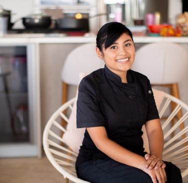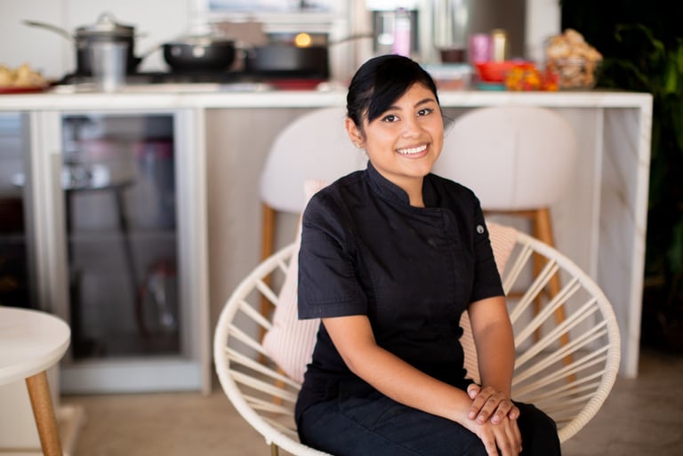 Desde una edad temprana se adentró en el mundo de la gastronomía de la mano de su abuela, una reconocida cocinera tradicional, de quien aprendió el arte de la cocina al fuego y desarrolló un profundo aprecio por los antojitos mexicanos. Motivada por esta pasión, decidió estudiar Artes Culinarias en Puerto Vallarta y posteriormente colaboró en diversos proyectos gastronómicos, incluyendo banquetes, hoteles y restaurantes.